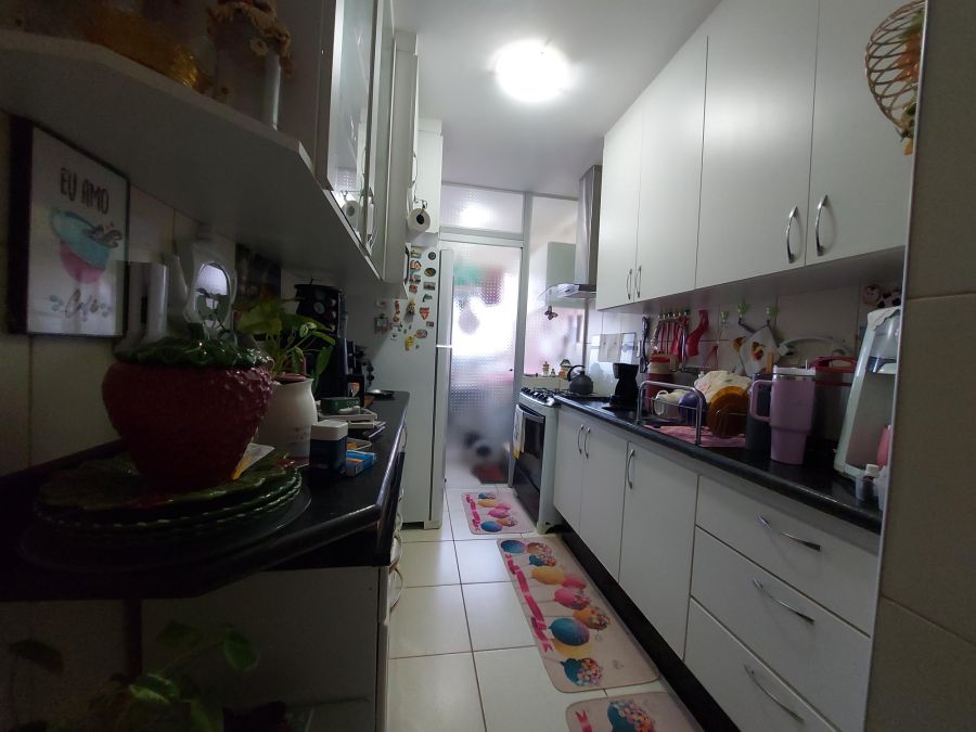 armários nos dormitórios e cozinha, 2 ar condicionado, piso cerâmica, lado de sombra